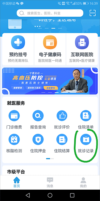 2、在打开的新页面中,选择挂号记录点击即可查询相关预约挂号