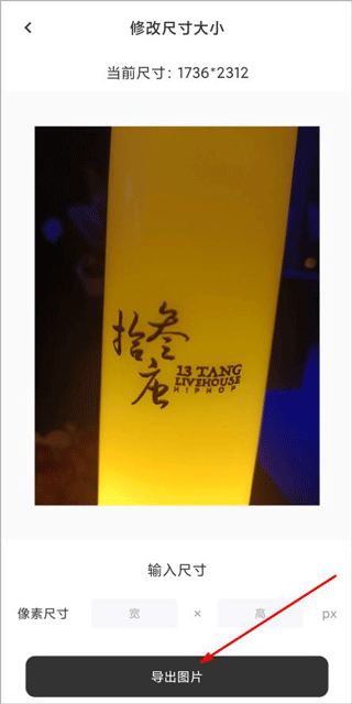 3、照片上传之后,输入尺寸,点击下方导出图片即可。