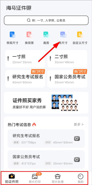 包含1寸、2寸、3寸、4寸等常规尺寸,并配有常用基础色和高端底色。同时提供官方指定证照规格超百种,比如毕业证、学位照、入学照等学生证,会计、考研、计算机、公务员、医护、考研、幼师及语言类考试证,社保、签证、普通话、简历、驾照等,满足您的各类拍摄场景需求。AI大数据分析下,软件还能智能推出当下热门的证件照尺寸供你选择,更快捷高效的用手机制作证件照。