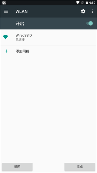 3、开启WiFi之后点击下方的完成返回刚才的页面。