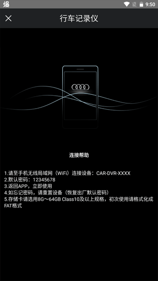 (1)请检查下载的APP是否是“奥迪行车记录仪”。