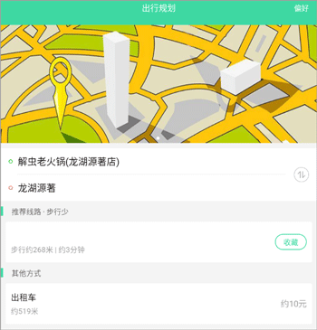 系统会自动给出公交方案中从当前位置到公交方案上车位置的步行导航方案