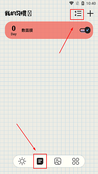 3、如果设定错误,可点击下方图标,进入打开清单页面,将错误的习惯打卡删除即可。