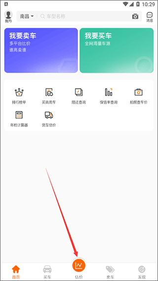 2、在首页下方的功能栏中选择“估价”服务进入;