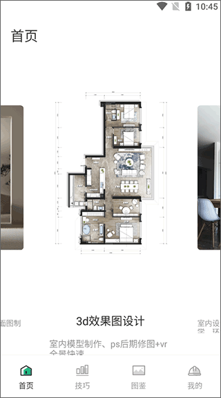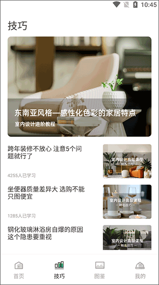 2、然后,在技巧中,用户可以在这里对装修的技巧进行学习;