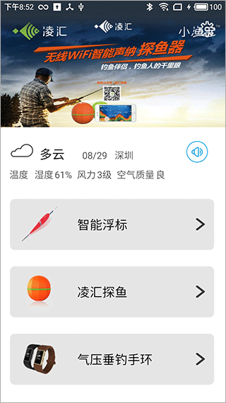 凌汇探鱼app是专业为众多钓鱼爱好者所开发设计的一个智能化探鱼软件,通过此软件可连接凌汇叮咚渔智能浮标,凌汇小渔宝探鱼器,凌汇气压垂钓手环,满足不同年龄阶段钓鱼爱好者的需求,同时还内置了垂钓天气,地图等互联网功能。