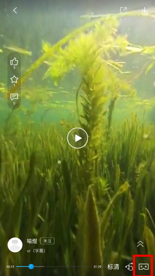 2、在播放VR视频的的右下角类似眼镜的小图标(下图红色方框内)