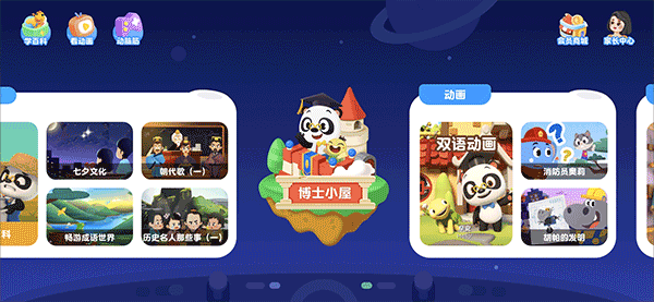 打开软件让孩子们在这里学习到很多知识,其中在学百科中,孩子们可以在这里了解到自然百科、人类百科和人文百科;在看动画中,孩子们可以在这里看到超多有趣且长知识的动画;在动脑筋中,大家可以在这里对事情进行分析和互动,从而获得更直接的表达方式,这里还有神秘的博士小屋可以供大家的探索,现在感兴趣的小伙伴们就快来下载体验吧。