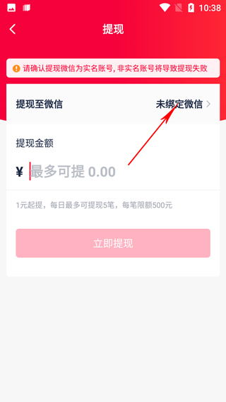5、进入提现页面,提现之前我们需要绑定微信接收提现金额;
