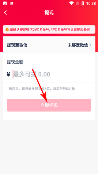 6、绑定之后就可以回到提现页面选择金额进行提现了。