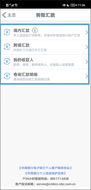 提供方便快捷的人民币境内汇款及外币跨境汇款功能,满足您资金日常结算需求!其中,跨境汇款币种可选择美元、英镑、港币或欧元,日累计汇款金额不能超过等值5万美元。