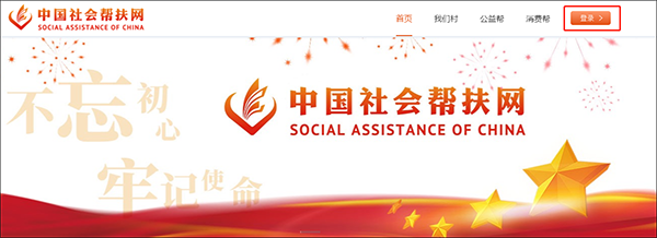 第一步:访问中国社会扶贫网首页,点击【登录】
