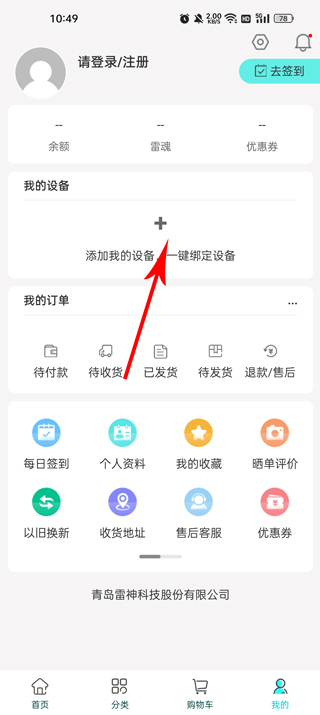 点击我的页面的我的设备,添加你的雷神设备,按照软件步骤即可添加。