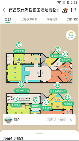 软件讲解非常专业,面向全年龄段设计了多种不同的讲解方式,用户可以扫描展馆内特定的二维码来了解特定的展览信息,也可以通过软件上的既定程序来了解整个展馆的历史。同时为了方便广大用户的使用习惯,软件还为大家设计了展馆地图,大家想听某个展馆的介绍,只需要点击展馆坐标即可完成对展馆的了解,这么全面的一款讲解软件,大家计划来南昌海昏侯旅游一定不要忘记下载这款软件。