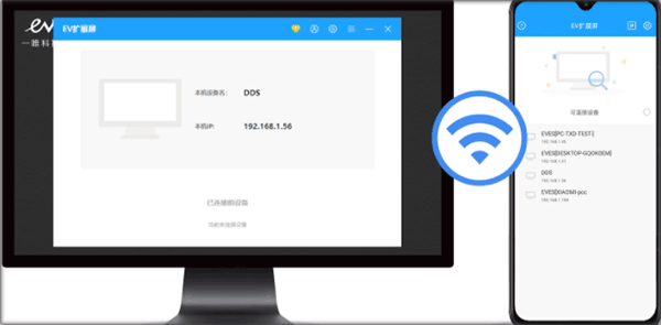 1、手机与电脑分别打开EV扩展屏,手机与电脑需处于同一个网络下。