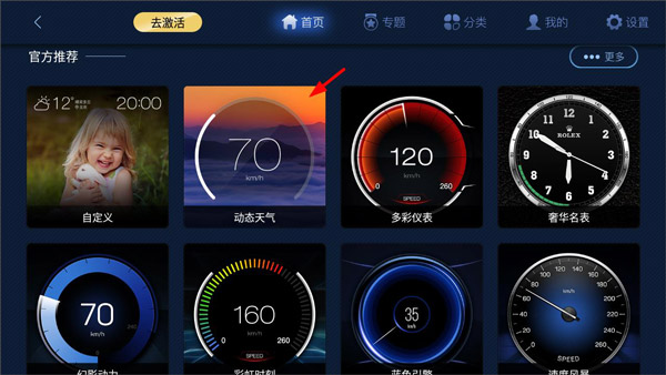 2、打开主题仪表后,用户可设置仪表屏幕主题;