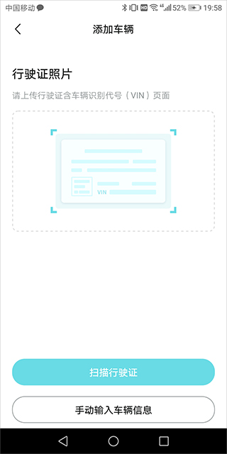 3、可以选择扫描行驶证或手动输入车辆信息,上传车辆信息,等待平台审核即可