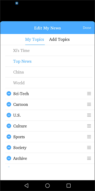 2、在打开的新页面中设置,删除项可以点击标题项前面的减号图标进行删除,增加项可以切换至Add Topics 栏进行设置,设置完成后单击 Done即可。