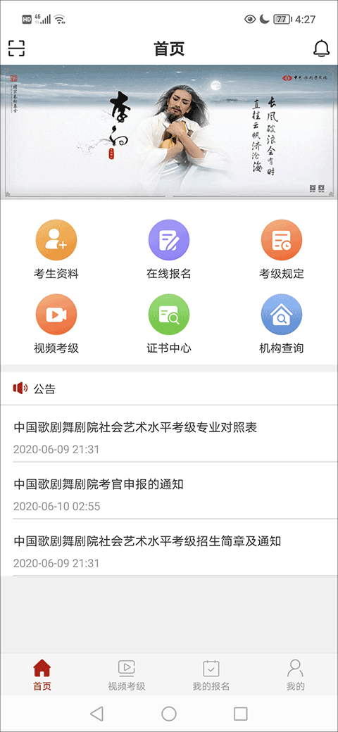 中国歌剧舞剧院线上考级app是一款专门为艺术生打造的在线报名软件,学生和家长可以在这里注册、报名参加艺术生考试,为了方便大家,软件还设计有缴费的入口,让大家足不出户就能完成线下的报名。在考生完成了报名之后,软件会单独在我的报名中显示报名情况,在视频考级中,用户可以在这里了解视频考试的各项规则、考级演示、模拟考级和正式考级,这么方便的一款软件,大家有需要就快来下载使用吧。