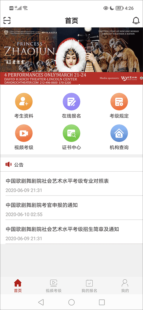 中国歌剧舞剧院支持线上报名和线上移动支付