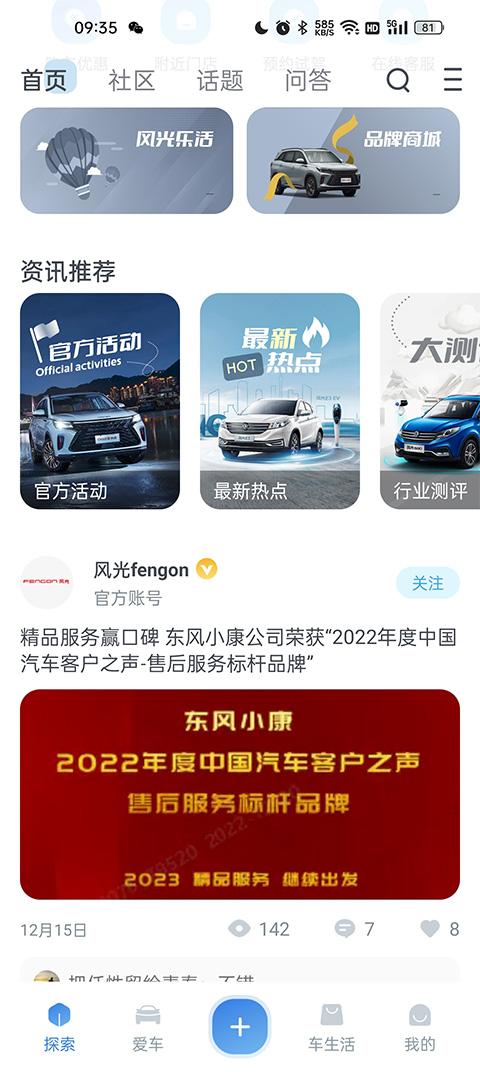 拥有社区、话题、问答板块,了解更多汽车知识,做一个专业的用车人;