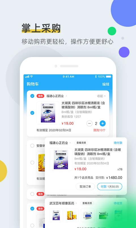 全药通app是一款专业的国内药品批发采购平台,软件为中药材、医药工业、商业、终端(药店、诊所等医疗机构)提供一站式采销服务,打通订单流、资金流、物流、票据流、物权流,提高产业链效率,融合移动社群,服务企业,惠及民众。基于现有1/3行业客户和10万名医药专业服务人员的独特强大资源,平台将逐步构建成集“交易+物流云仓+数据+金融”为一体、中国最有价值的第三方SF2B2C大健康平台。