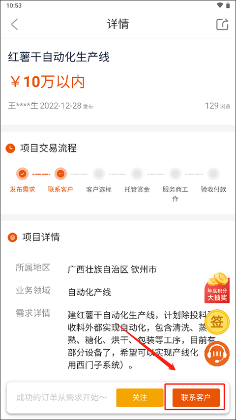 3、点击任意一个项目,在线可以了解项目详情或是咨询项目问题。