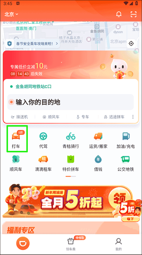 1、首先,打开app,在滴滴界面找到并点击“打车”选项;
