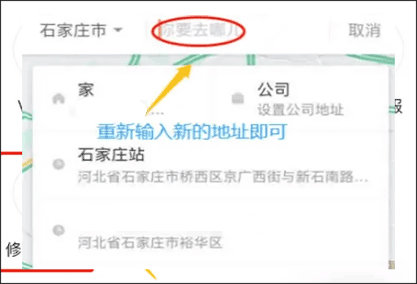 6、点击修改目的地之后,系统会提示选择新的目的地,同时会重新开始计价。