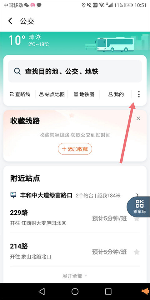 1、用户可以进入软件的公交线路详情页面中点击【乘车码】