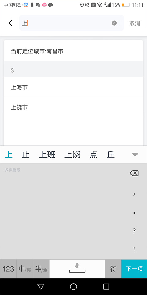 2、点击该图标后,在打开的新页面中可以通过顶部搜索框输入想要切换的城市名进行查找