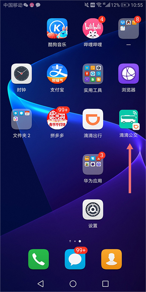 4、此时用户返回手机桌面可以看到滴滴公交了,点击进去可以快速到达公交页面