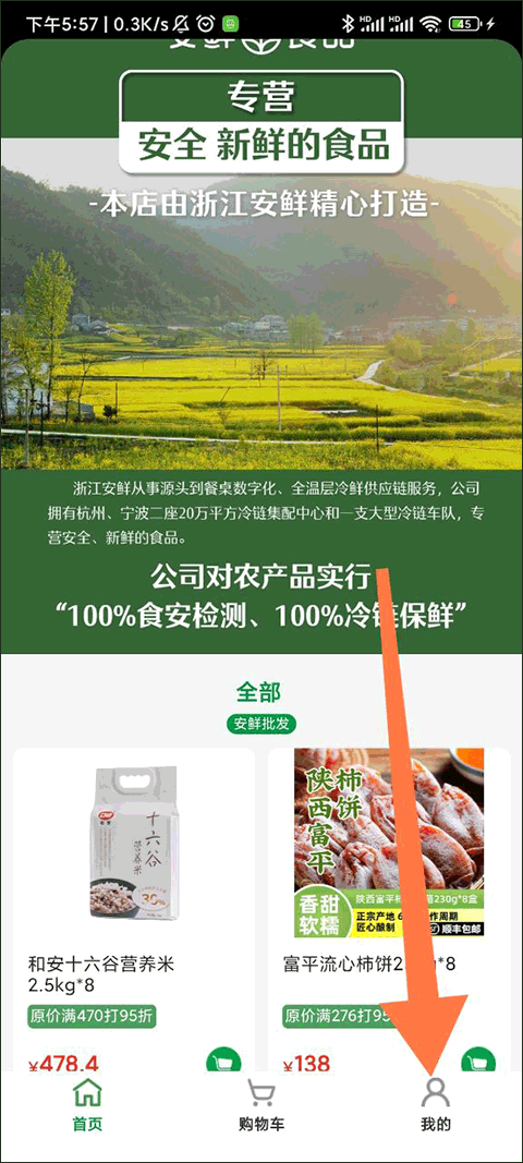 1、进入安鲜生活app,点击底部的我的进入个人界面。