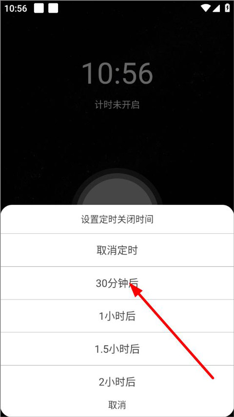 3、打开页面后可设置定时关闭时间,有30分钟、1小时、1.5小时、2小时等时间段可设置,用户选择需要时间设置即可。