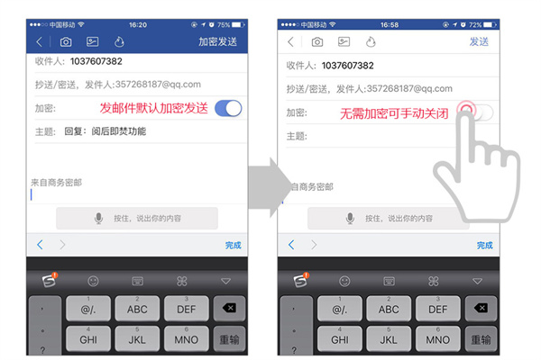 1、勾选阅后即焚的邮件在跳出阅读后即刻自动删除,配合加密技术,可杜绝任何形式的邮件泄密。