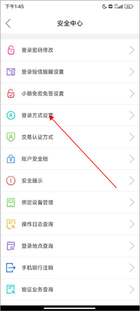 3、进入安全中心界面点击登录方式设置,选择人脸登录即可。
