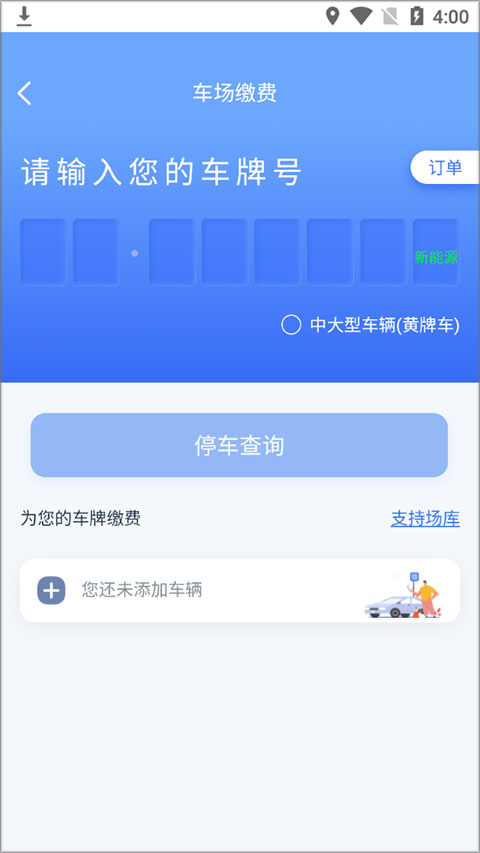 3、添加你的车辆输入车牌号,之后进行缴费即可。
