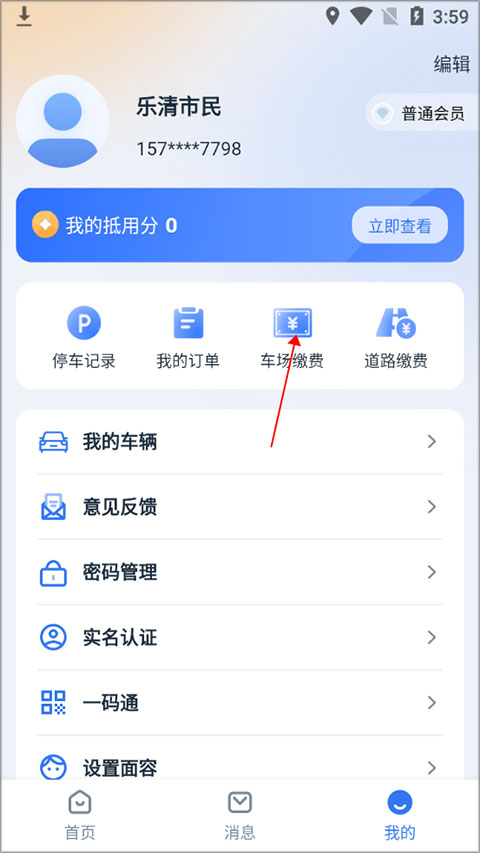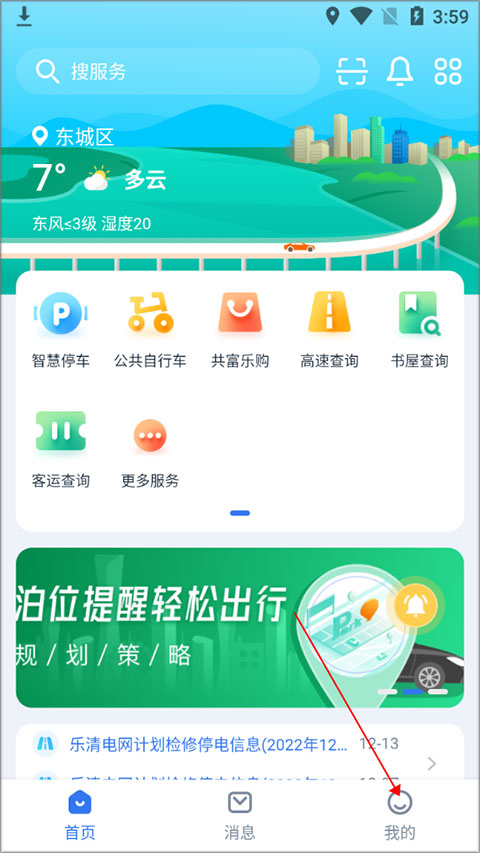 1、下载安装好乐清行app,进入软件首页点击我的。