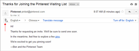 来本站下载谷歌邮箱手机版,打开后页面就是中文的了,而且Gmail中所有其它语言的邮件都会有一个“翻译邮件(Translate message)”按钮(下图红色箭头所指)点击就自动翻译