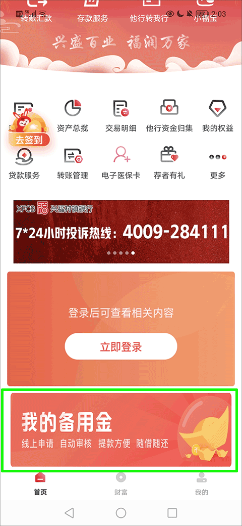 1、首先,打开应用,在首页的下方找到并点击“我的备用金”选项;