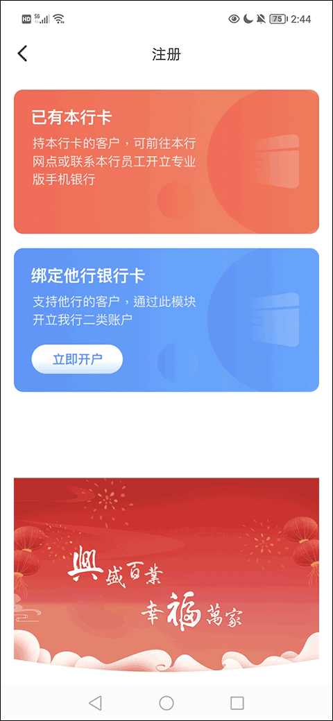 3、需要注册的用户需要在注册界面找到并点击“立即开户”选项;