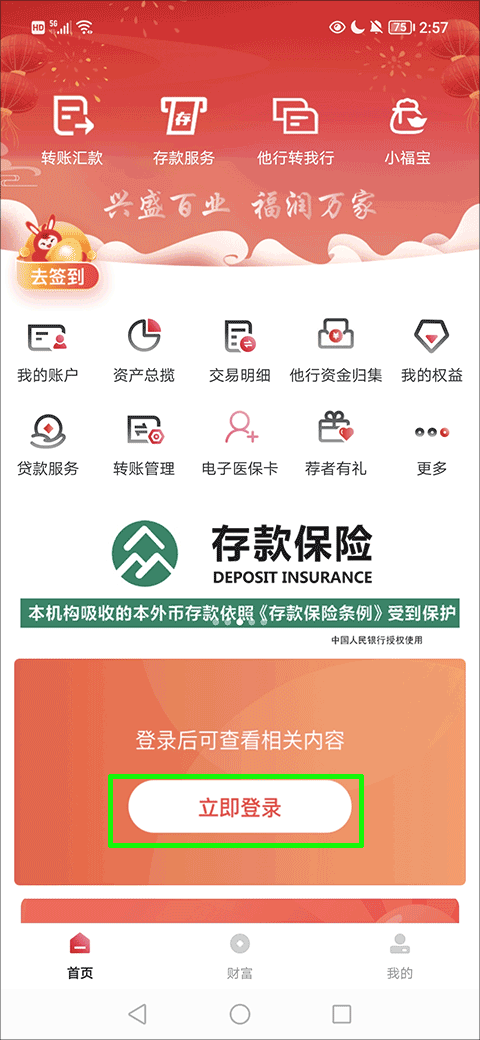 1、首先,打开应用,在首页找到并点击“立即登录”的选项;