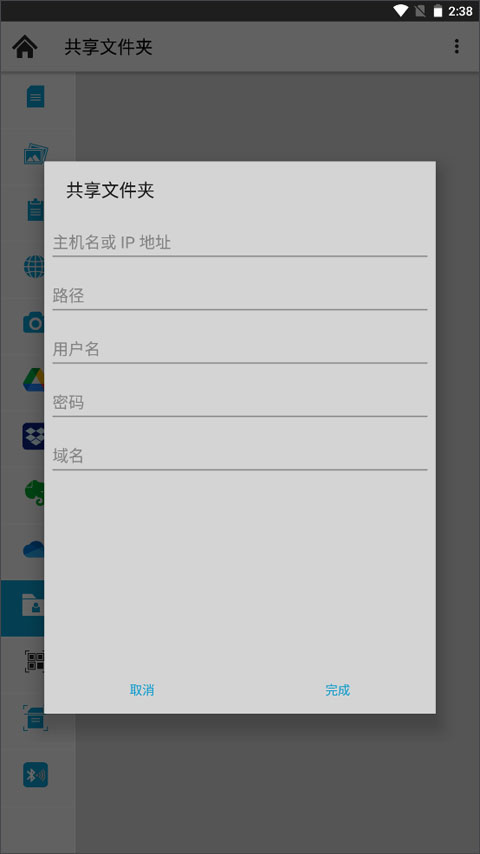 利用此选项在台式电脑或笔记本电脑上设置对共享文件夹的访问。轻触共享文件夹,提供以下信息,然后轻触完成: