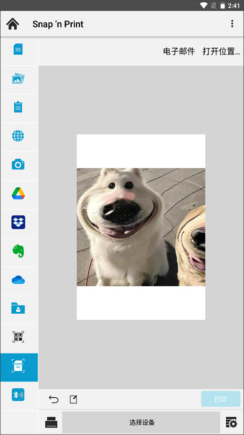 您可以打印各种不同文件格式的照片和文档,包括PDF、JPG、BMP、PNG、。TIFF和 TXT或者Google Docs。您也能以较低的分辨率打印通过应用程序的内置Web浏览器访问的网页。访问保存在Android设备或支持的外部服务上的文档。