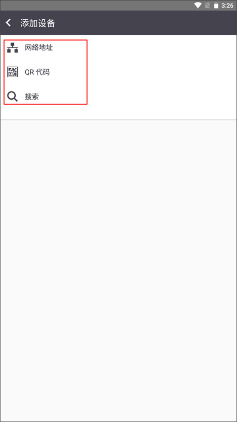 2、有网络地址、QR代码、搜索这三种添加设备的方式,以网络地址为例。