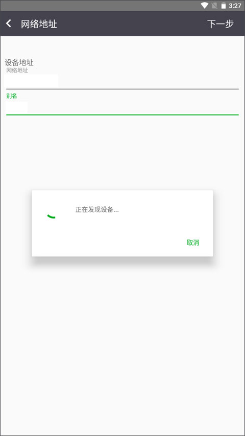 3、输入设备地址和别名,点击下一步,等待app发现设备即可添加成功,如果想删除设备选中它即可。
