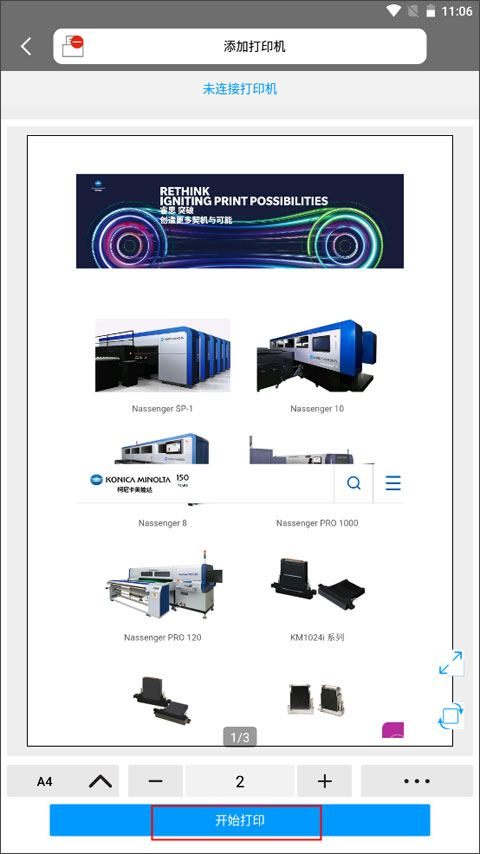 1、通过所连接的MFP,打印app相册簿中所选的图像。