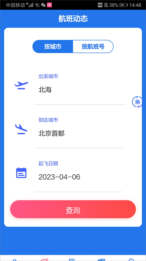 在航班动态页面中可以按城市或航班号进行快速查询南航全部航班信息动态