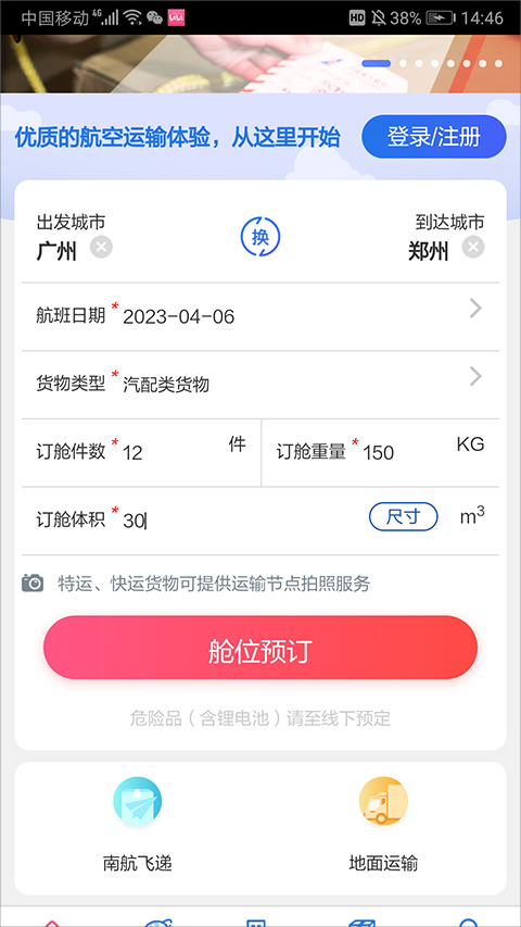 1、南航物流舱位在线预订
