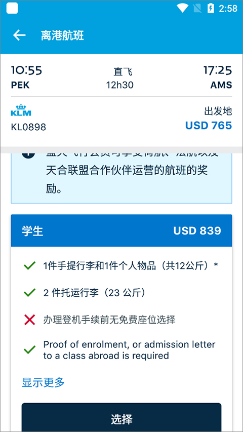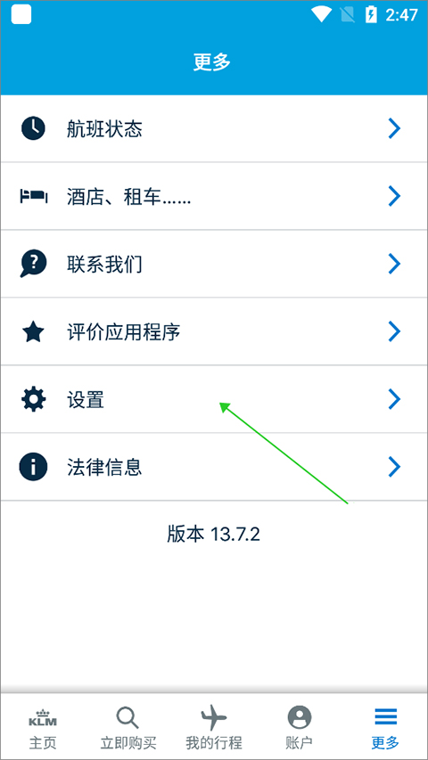 klm航空官方机票预订app需要升级到13.7.2版本,该版本在用户后就可以看到它所呈现的页面是中文页面